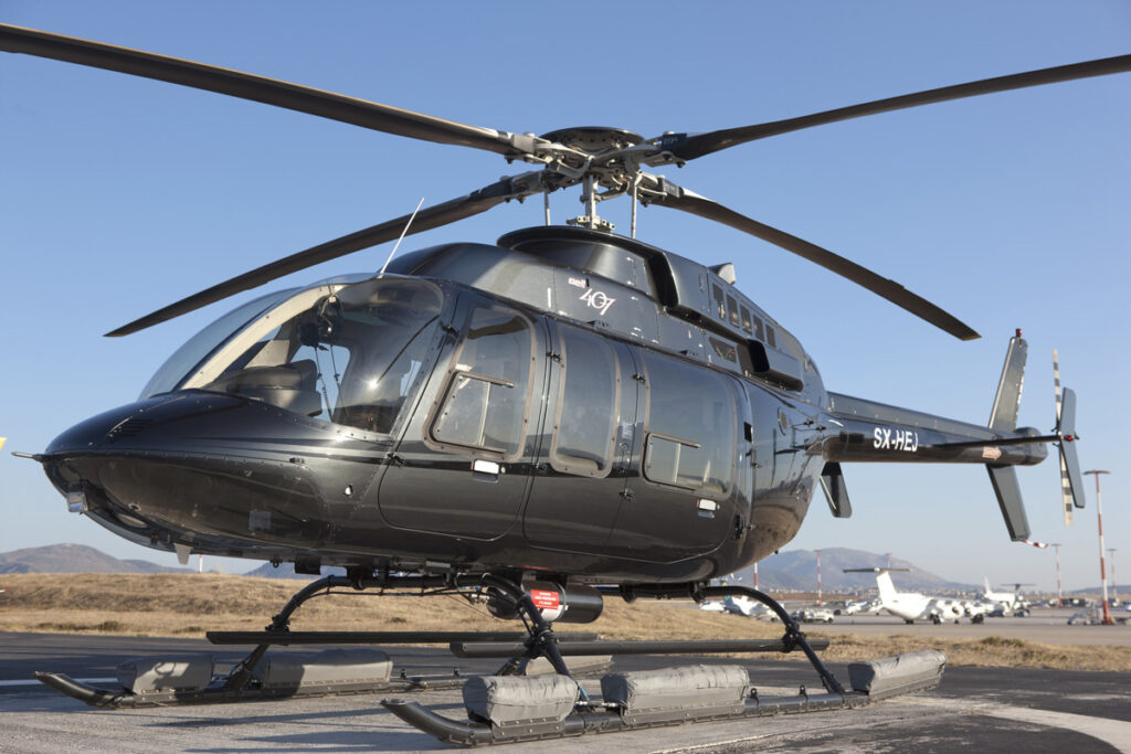 The Bell 407 is a four-blade, single-engine turbine civil utility helicopter equipped with airconditioning.